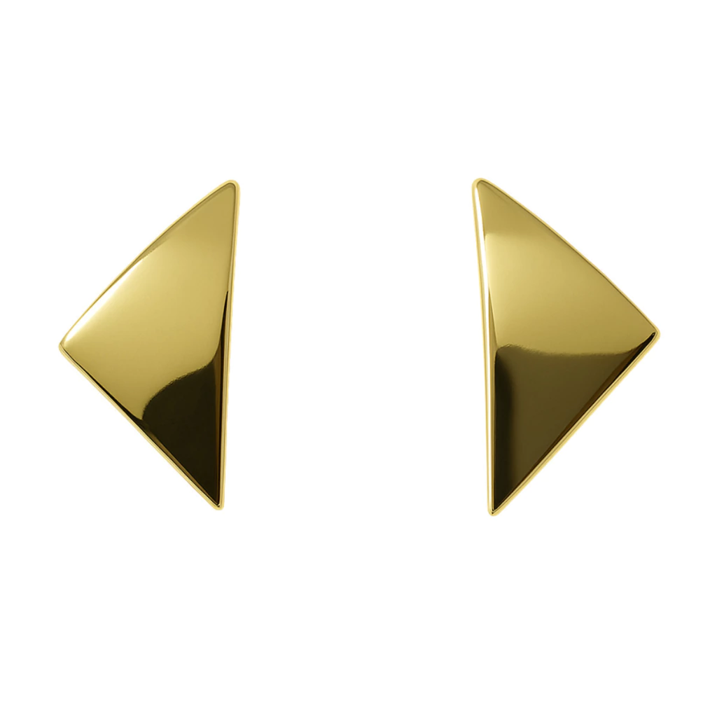 O brinco tem o formato triangular alongado e linhas retas precisas, que traduzem a força do minimalismo em uma estética marcante.